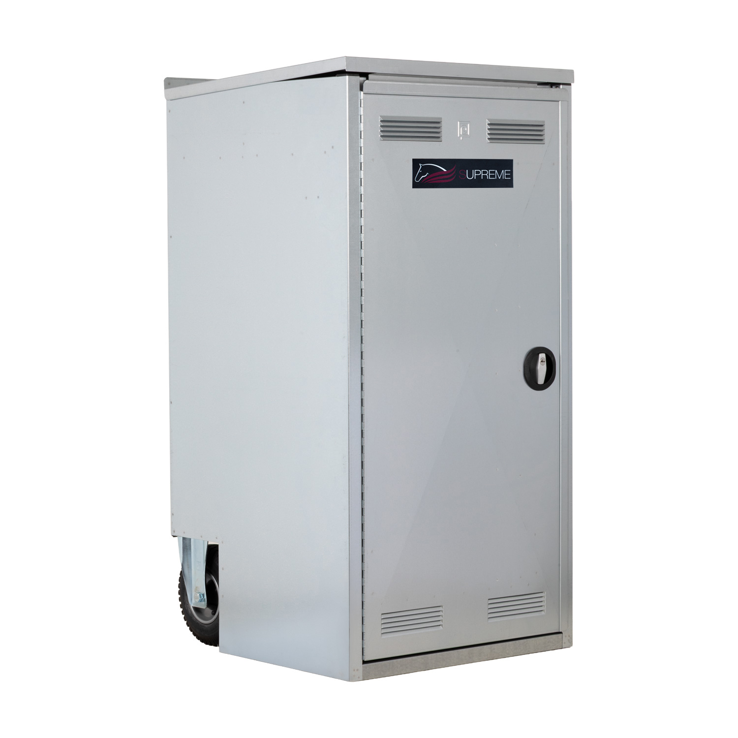 The ideal solution for organizing and protecting your equipment during competitions. Made of stainless steel, it is easily transportable thanks to the plastic wheels and integrated handles. It offers intelligent storage with 4 compartments in the lid, stirrup holder, bridle hooks and integrated bottle holder. Maximum security guaranteed by the recessed lock with double key.