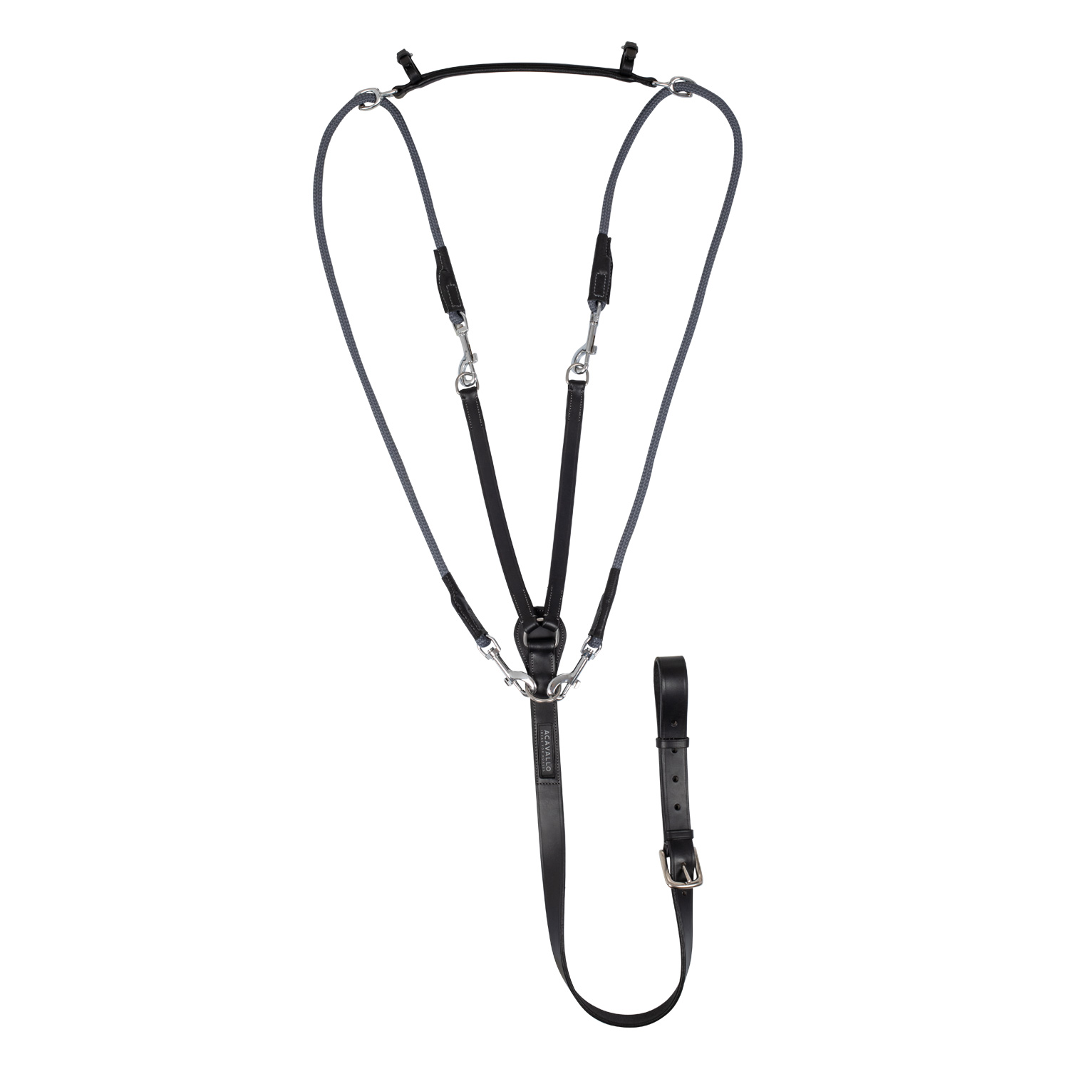 Questo strumento è fondamentale per l'addestramento dei cavalli. Si estende dal sottopancia, si biforca a metà lunghezza e si connette a due anelli posizionati alla base delle orecchie del cavallo.