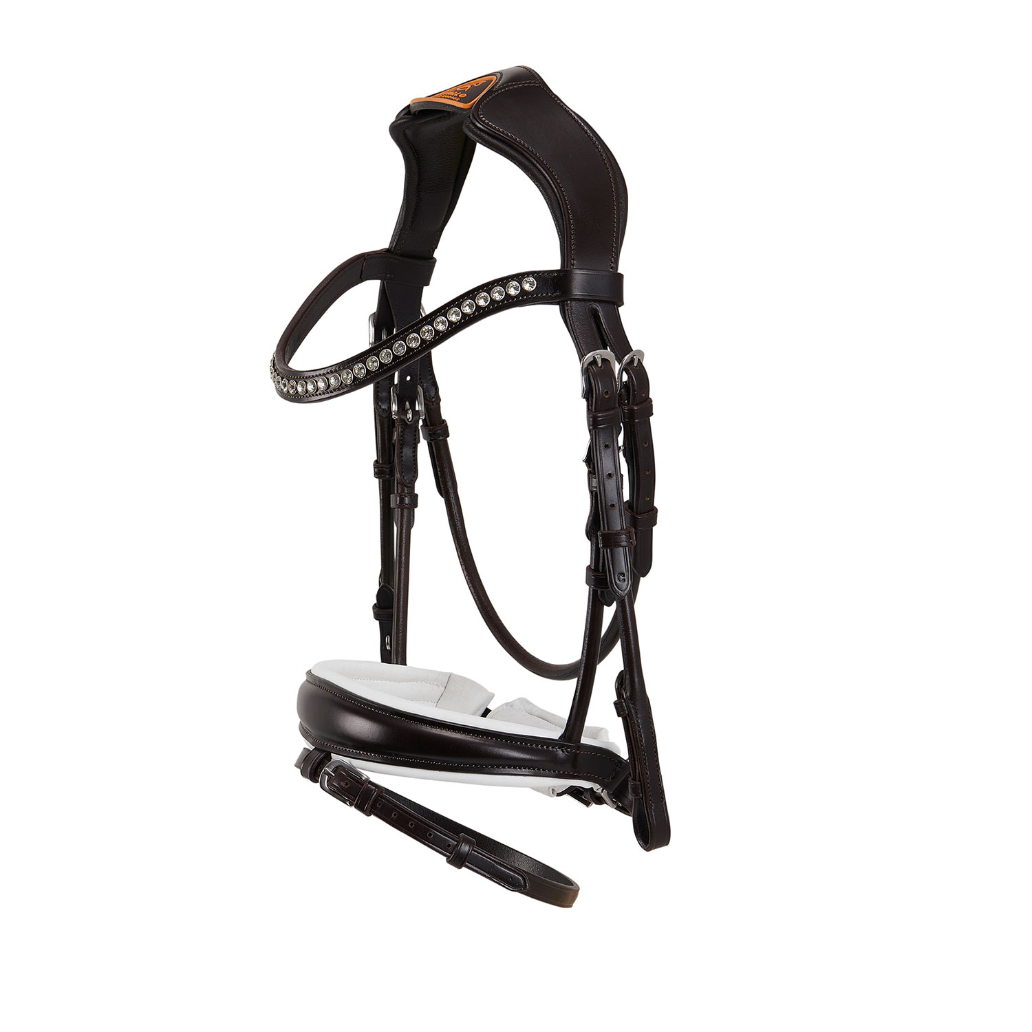 Il sopracapo sagomato e anatomico è progettato per lasciare spazio alla parte centrale, riducendo la pressione nella zona del cranio del cavallo e evitando qualsiasi interferenza con le sue delicate orecchie.