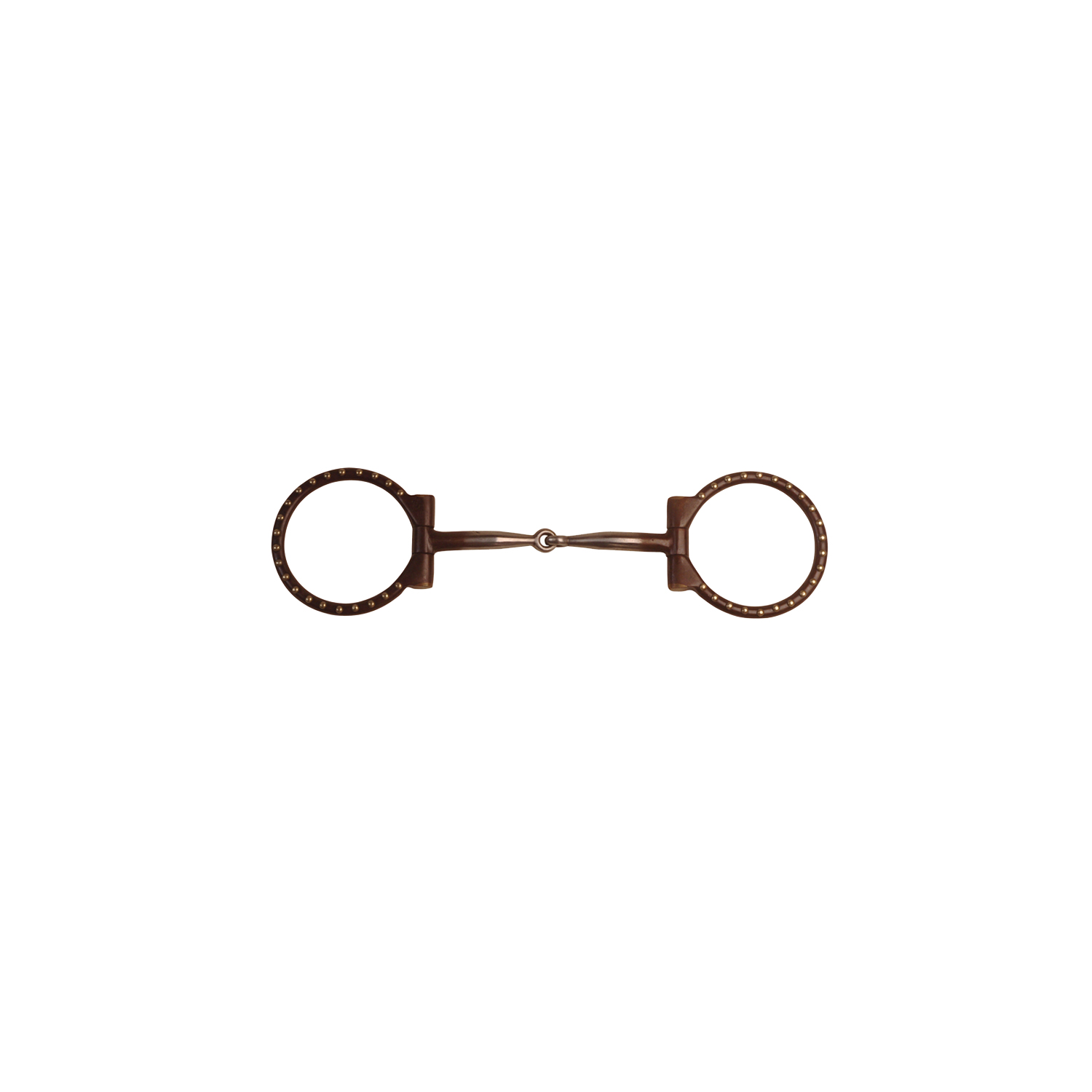 Filetto western a D in ferro brunito, anelli decorati, imboccatura co inserti in rame