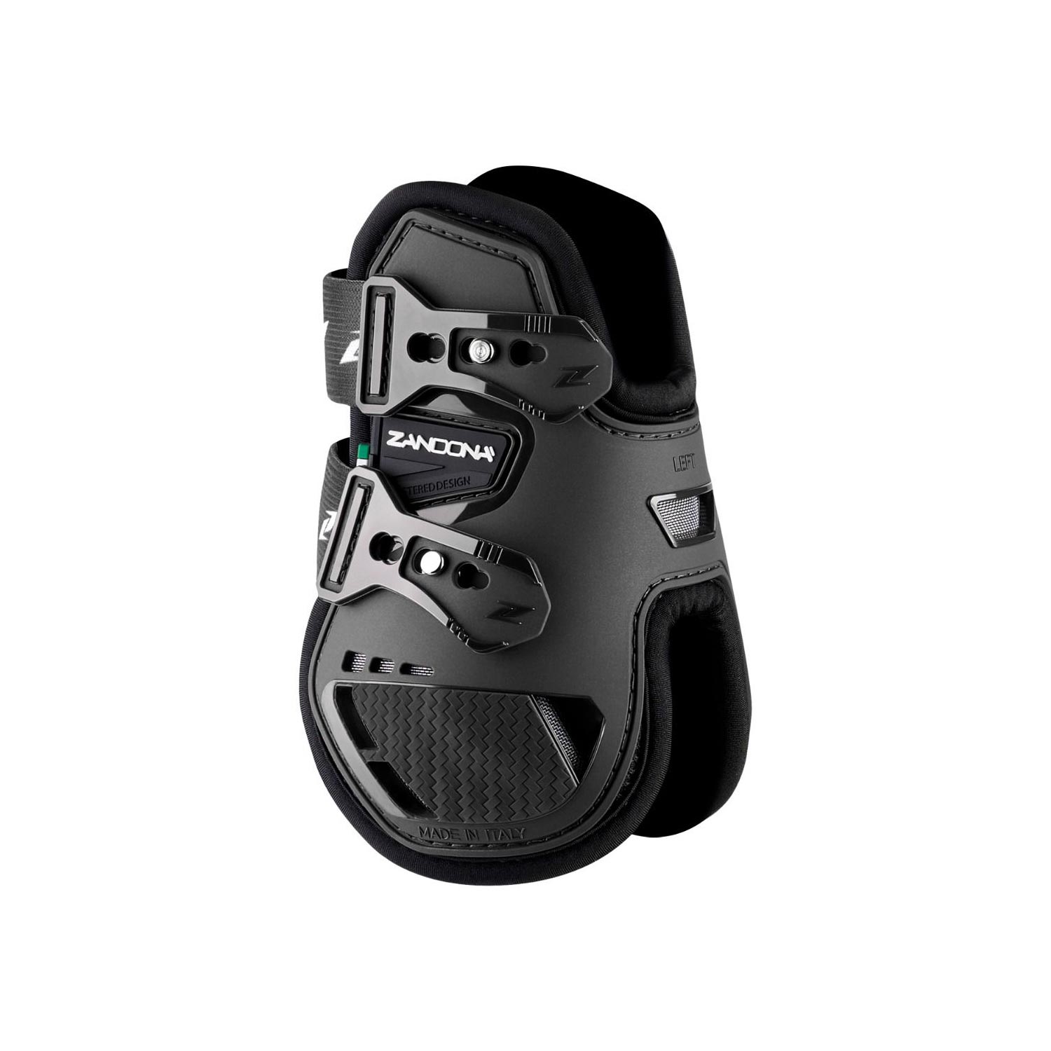 Grazie ad una diversa conformazione lungo il tendine, senza compromettere comfort e benessere del cavallo, è progettata per aiutare i cavalli che hanno difficoltà nel saltare con le gambe posteriori e rappresenta l'evoluzione della nostra collezione più longeva e venduta per la disciplina Salto Ostacoli, ora riprogettata con un design profondamente rivisto per offrire al cavallo delle stinchiere ancor più leggere e traspiranti ed un’area di protezione più completa. Gli elementi in Fibra di Carbonio, ancora più resistenti e ampi, creano una barriera termica per proteggere le articolazioni del cavallo dal calore generato dagli sfregamenti e ne aumentano anche la resistenza agli impatti. L’imbottitura è costituita da uno strato esterno in 3D Air-Mesh, uno strato interno in Neoprene Traforato ed il collaudato Gel-Tech per le zone più esposte agli urti. I nuovi puntalini sono stati riprogettati con un design moderno e resi più comodi e funzionali per uno sgancio e aggancio rapido ed una resistenza maggiore. Infine, la collaudata Flex-Zone continua a garantire ampia flessibilità di movimento all’arto. 100% Made in Italy e sostenibile poiché realizzata con TPU riciclato al 95% (certificato PSV)