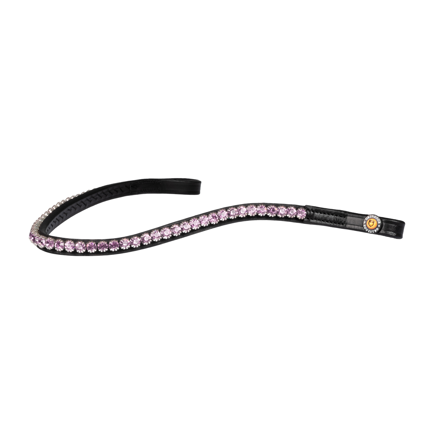 La sua bellezza è ulteriormente esaltata da una fila di cristalli rotondi rosa incastonati che conferiscono brillantezza ed eleganza alla parte alta della testa del cavallo.