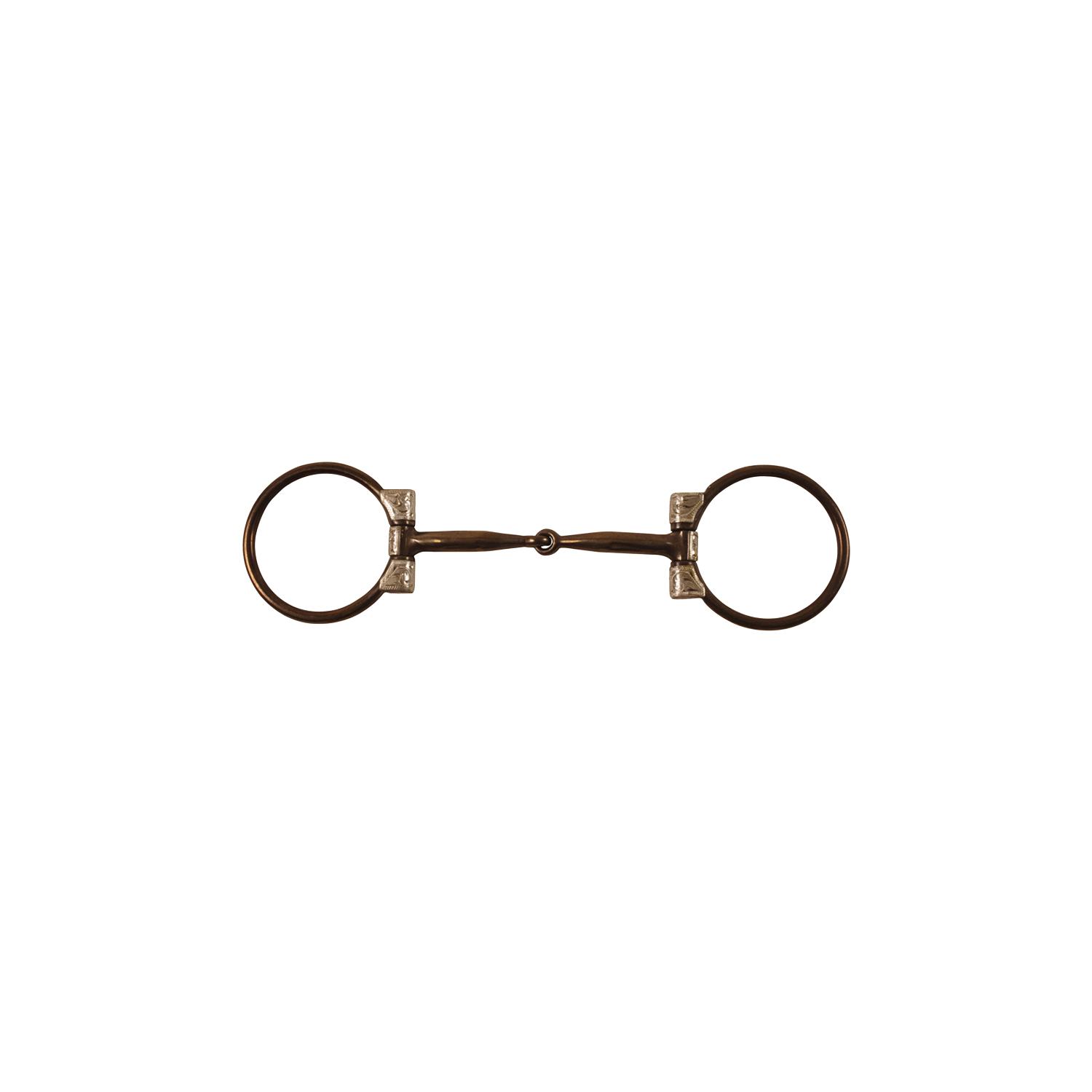 Filetto western a D in ferro brunito decorato, imboccatura inox con inserti in rame