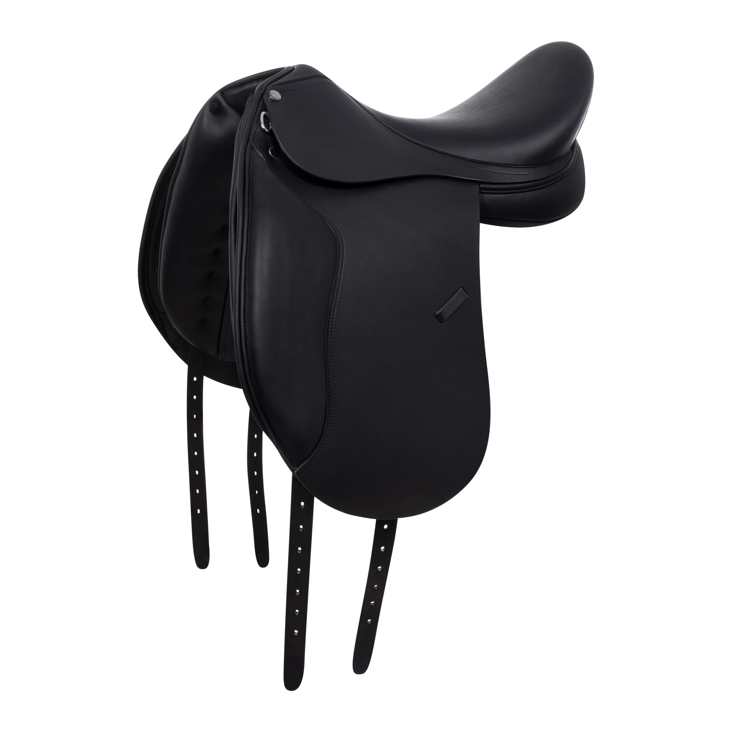 Sella da dressage realizzata con cuoio di alta qualità, progettata per garantire una stretta connessione con il cavallo senza limitarne i movimenti.