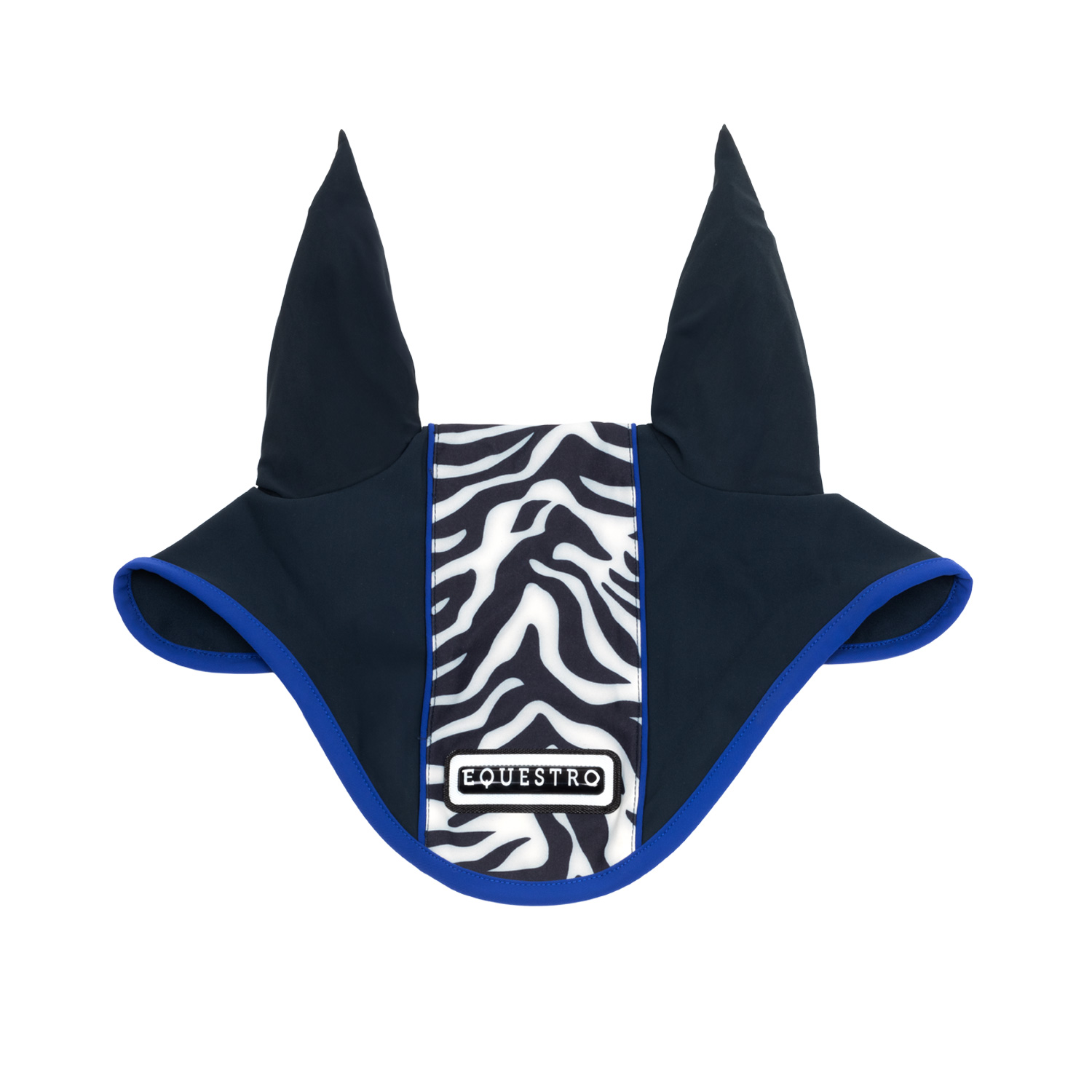 Un connubio di funzionalità ed eleganza caratterizza questa cuffietta grazie all'inserimento della fascia centrale in tessuto tecnico zebrato su cui è posizionata la patch siliconata con scritta Equestro che di certo non passa insservata.