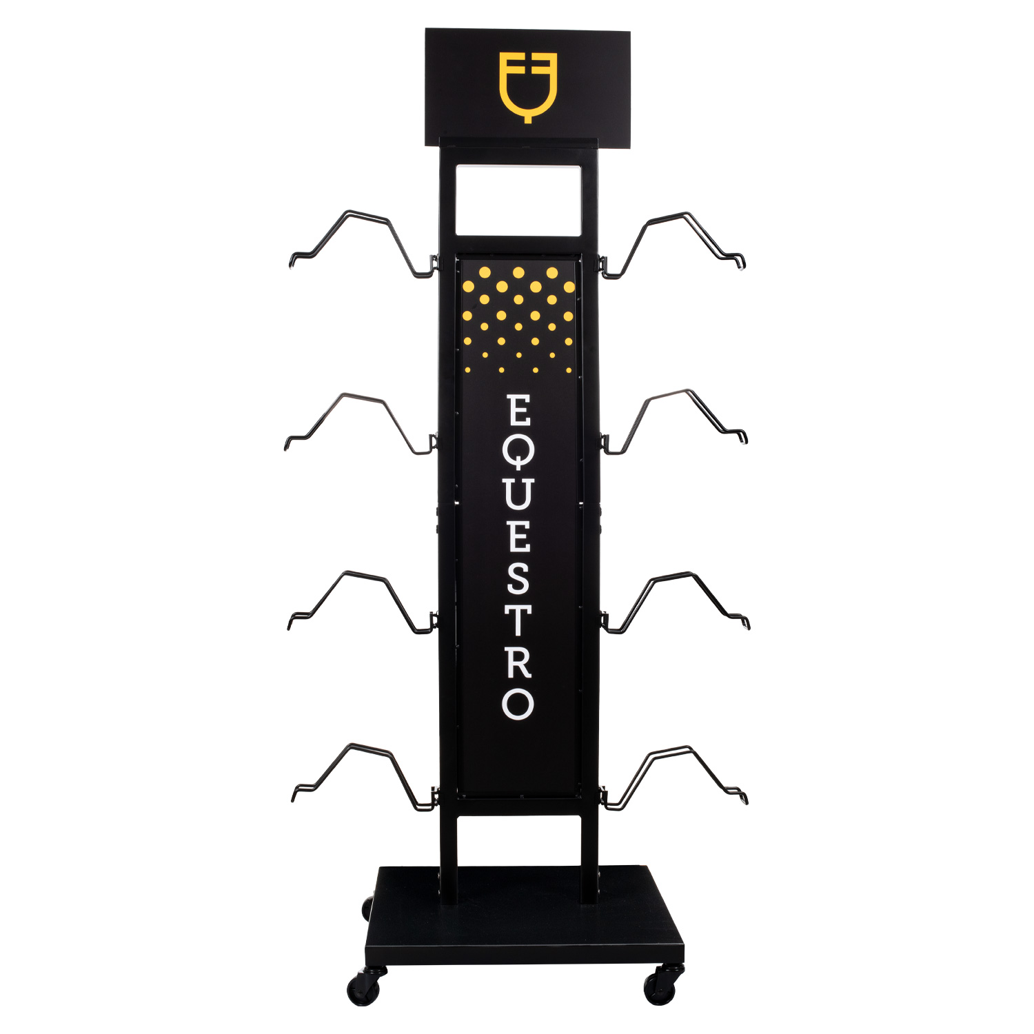 Espositore Equestro per caschi, comodo pratico e leggero grazie alla presenza delle ruote scorrevoli che permettono di spostarlo con facilità. Ideale per esporre durante fiere e eventi vari i caschi. Può contenere fino a 8 pezzi.