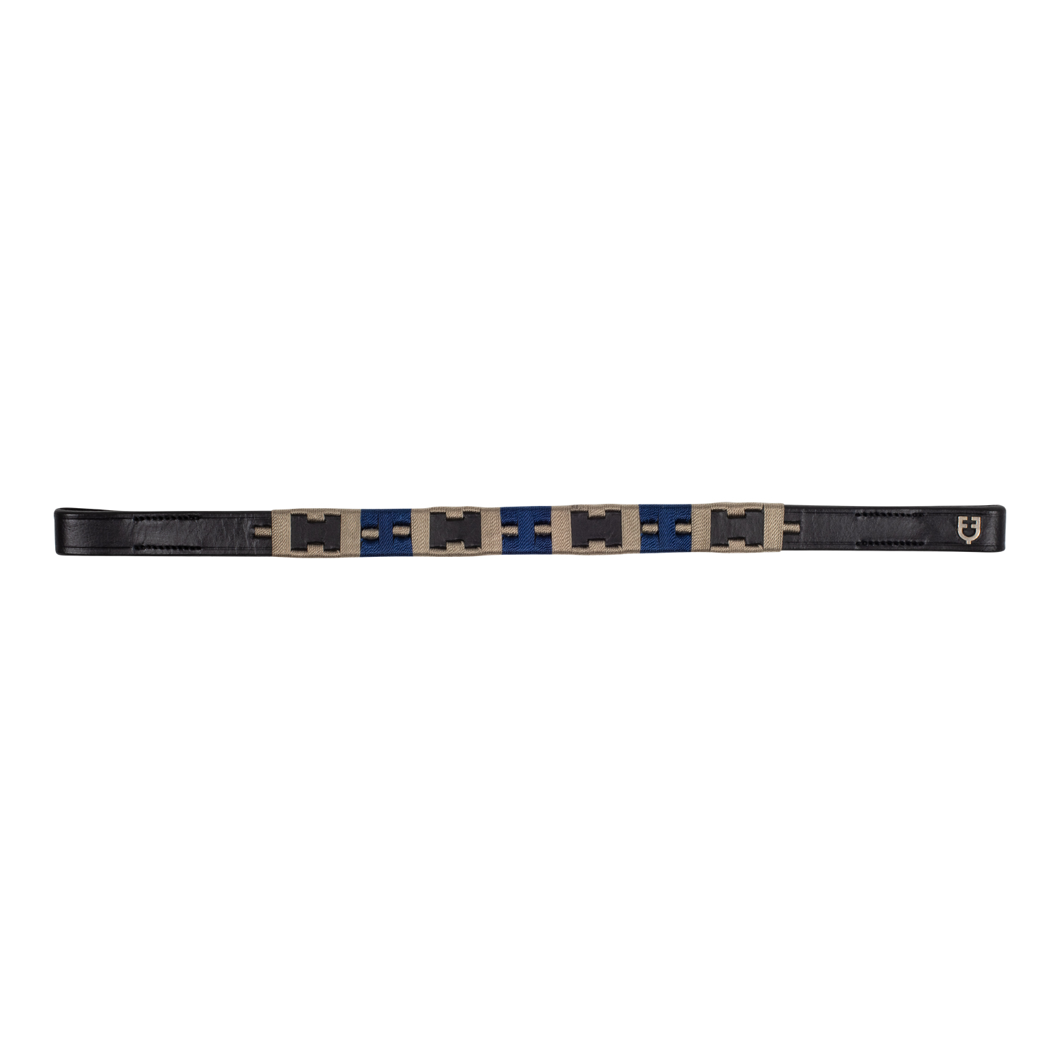 Frontalino realizzato in morbido cuoio di alta qualità con decorazioni geometriche. Si adatta perfettamente a tutte le testiere inglesi. Decorato con logo Equestro metallico laterale.