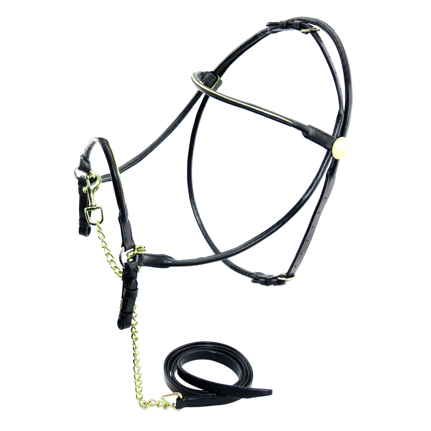 Cavezza cuoio tubolare da presentazione, con lunghina in cuoio e catena ottone