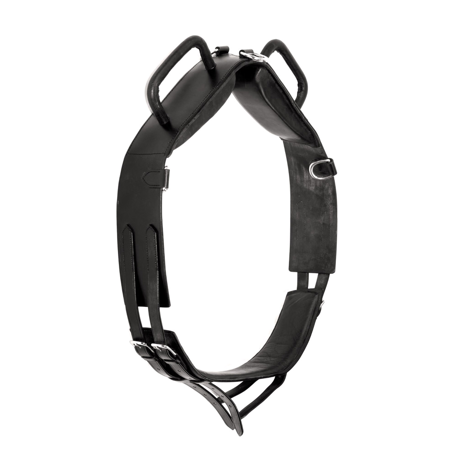 Fascione da volteggio realizzato in morbido cuoio di alta qualità con sottopancia allacciabile da entrambi i lati.