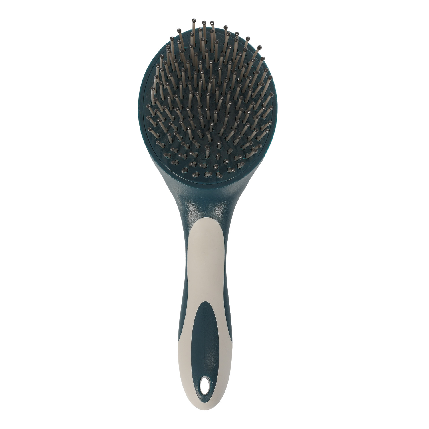 Spazzola tonda realizzata in morbida gomma con denti fini per coda e criniera. Impugnatura antiscivolo, comoda e maneggevole.