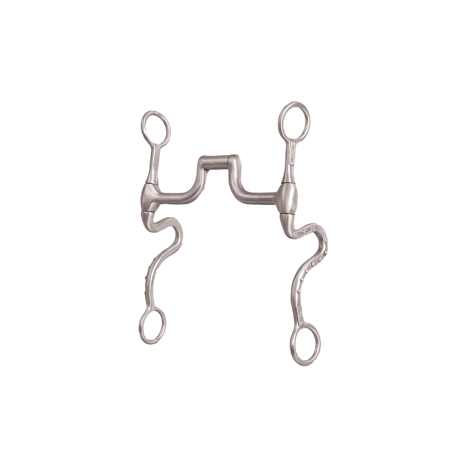 Morso western METALAB intero satinato, imboccatura con inserti in rame a ponte con rullo, aste curve decorate