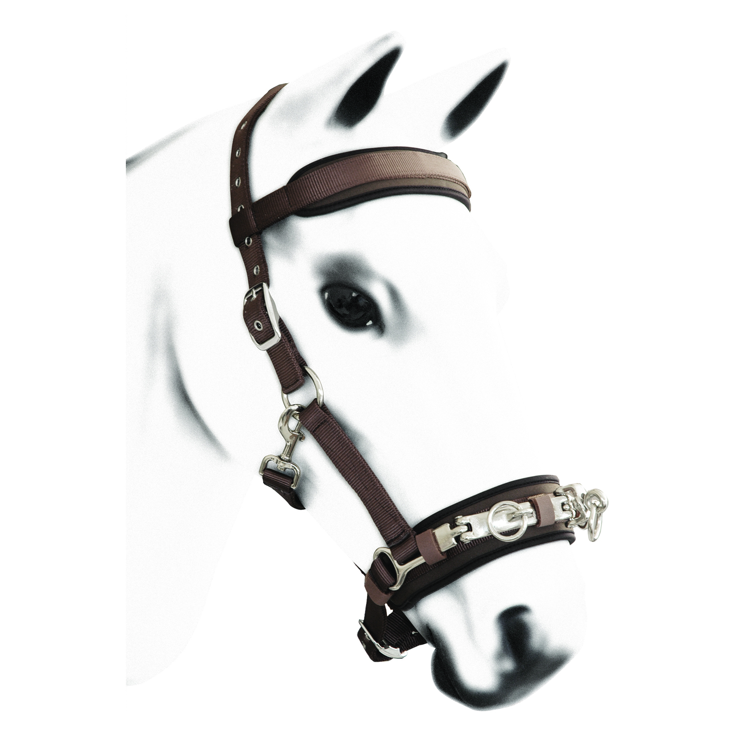 Cavezzone da doma in nylon con imbottiture in neoprene e fibbie inox