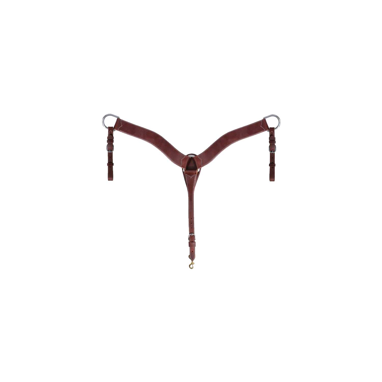 Pettorale realizzato in resistente cuoio doppiato, con cuciture a contrasto e fibbie in acciaio inossidabile per garantire una massima resistenza e durata nell'utilizzo.