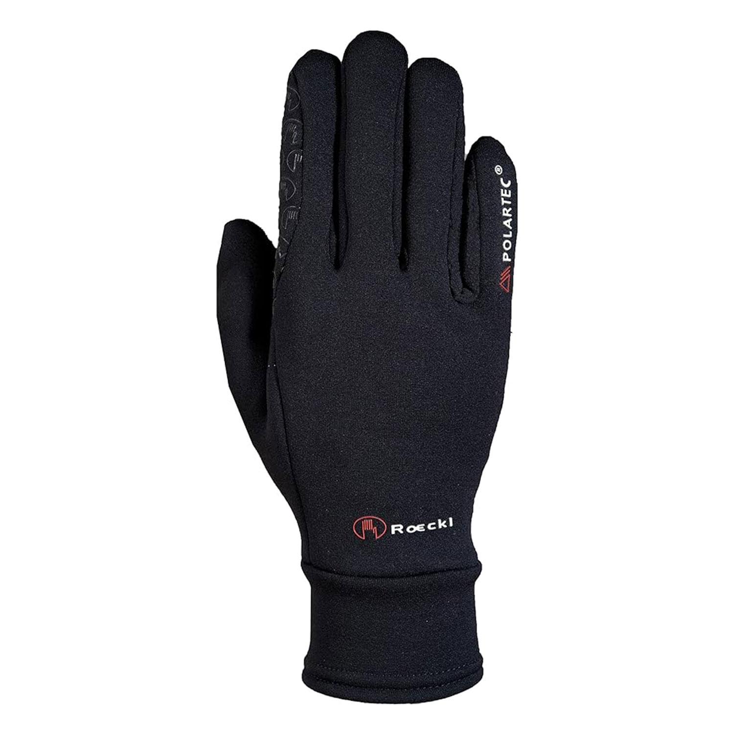 Comodo e visivamente accattivante: il palmo è finemente siliconato con innumerevoli loghi ROECKL, garantendo così una presa ideale sulle redini.