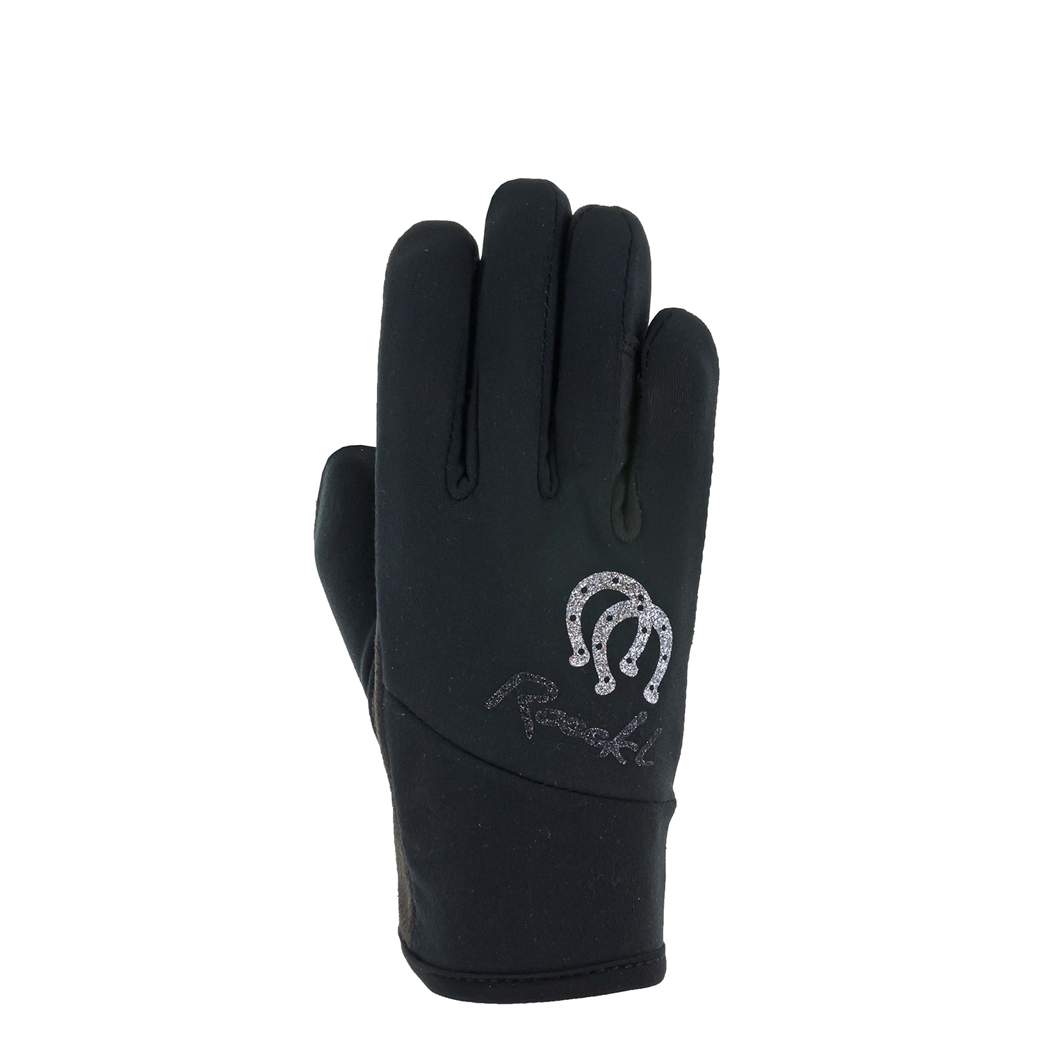I bambini che amano i cavalli apprezzeranno anche il design di questo modello: il dorso è caratterizzato da scintillanti ferri di cavallo argentati e da un elaborato logo Roeckl stampato e scintillante.