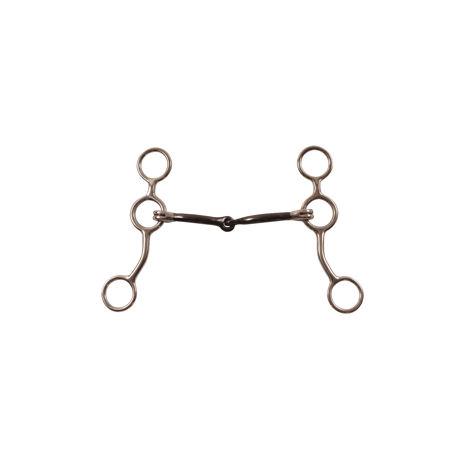 Morso western inox da barrel snodato, imboccatura in ferro nero e inserti in rame, aste corte