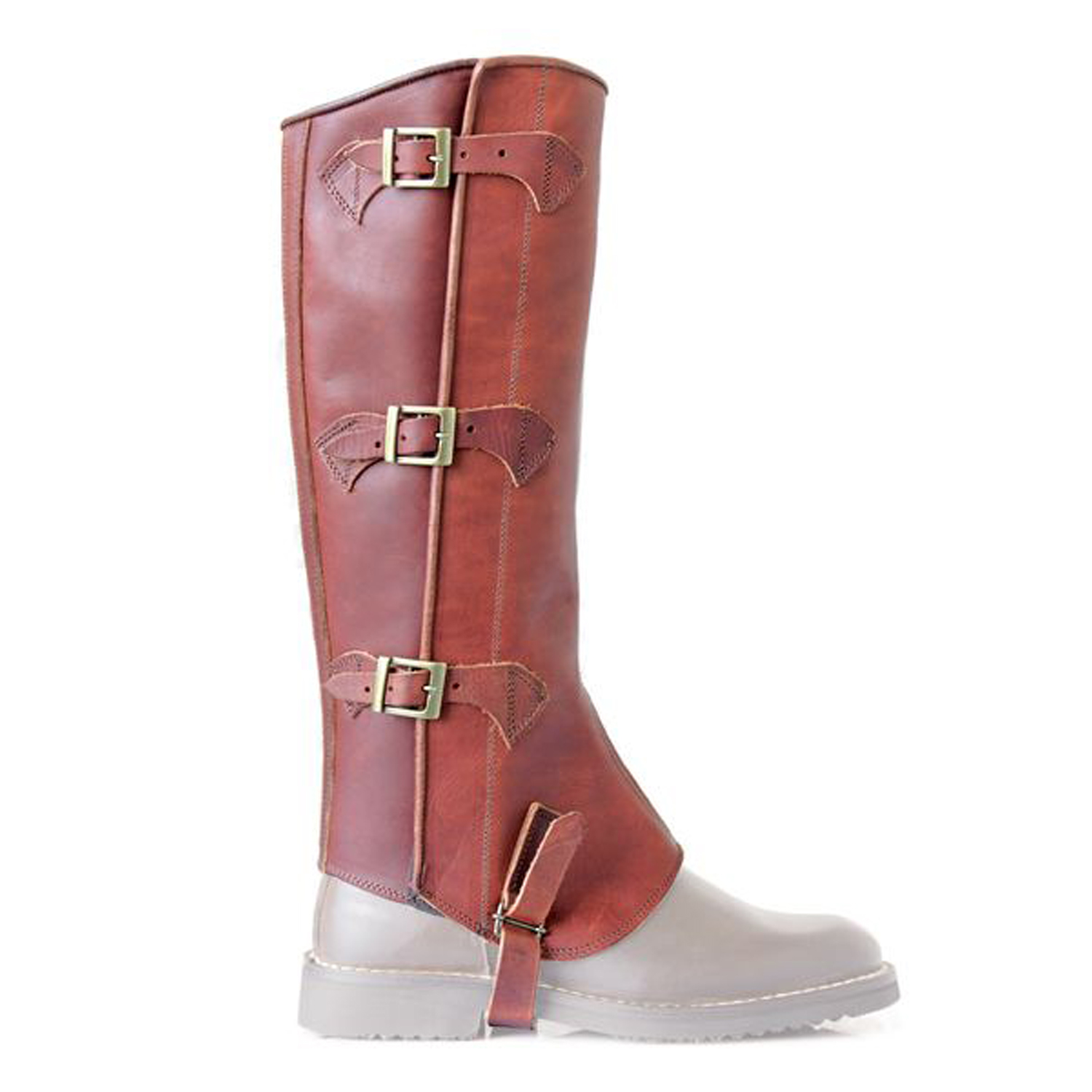 Gambali "Umbria Equitazione" in cuoio rigido modello Maremmano, con chiusura laterale a strappo e tre fibbie