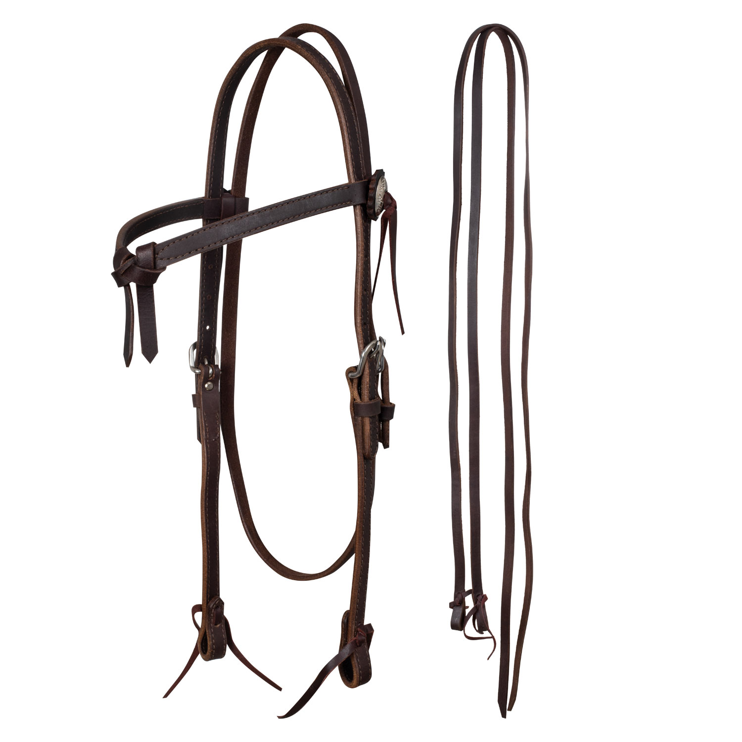 Testiera western realizzata in morbido cuoio ingrassato con lavorazione artigianale.