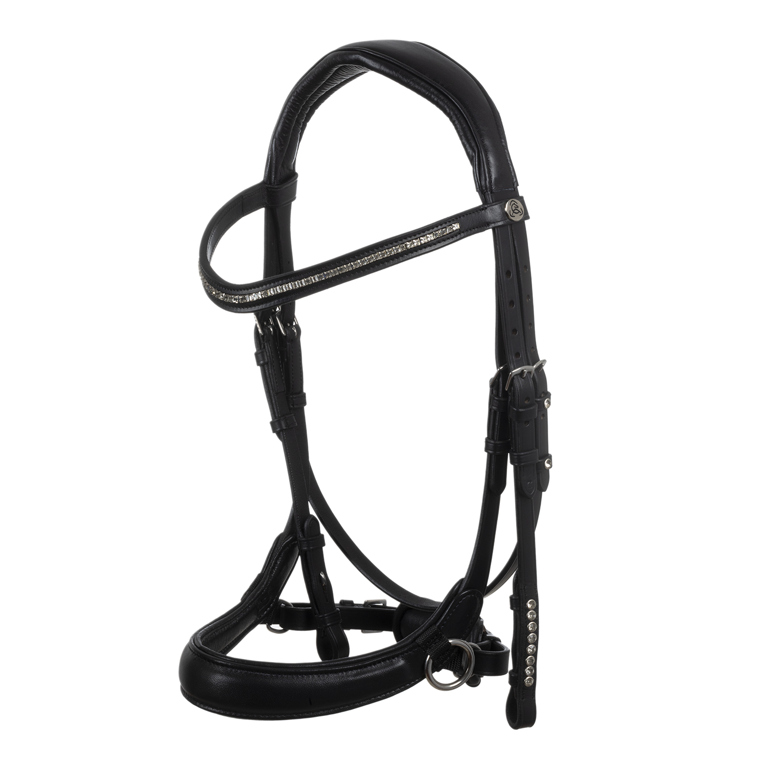 Le fibbie resistenti in acciaio inox garantiscono una lunga durata e una chiusura sicura. La testiera Tramonto grazie al frontalino decorato con strass offre un equilibrio tra stile, comfort e qualità artigianale che soddisferà anche i cavalieri più esigenti.