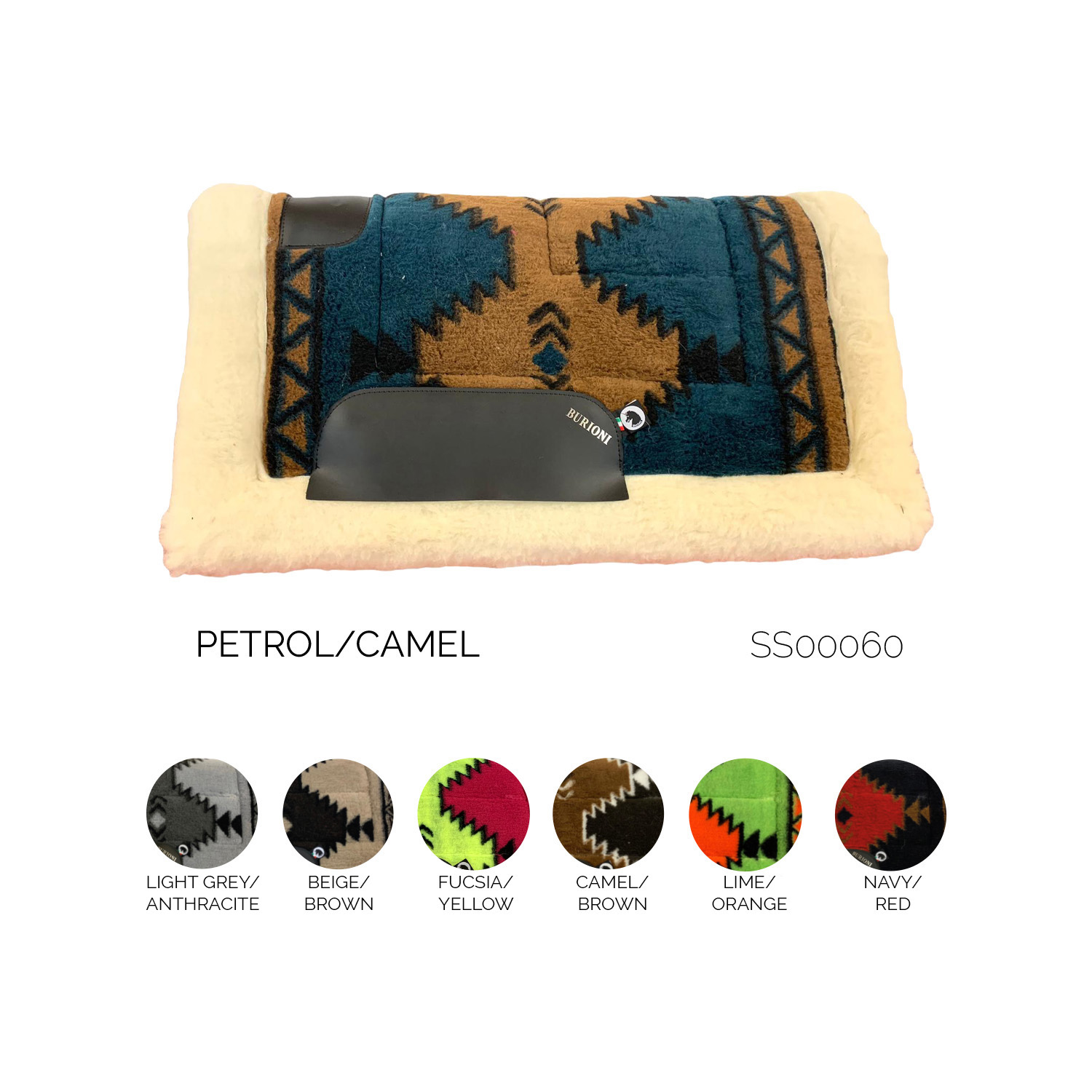 Sottosella western imbottito, tessuto pile e pelliccietta in pura lana, rinforzi in pelle