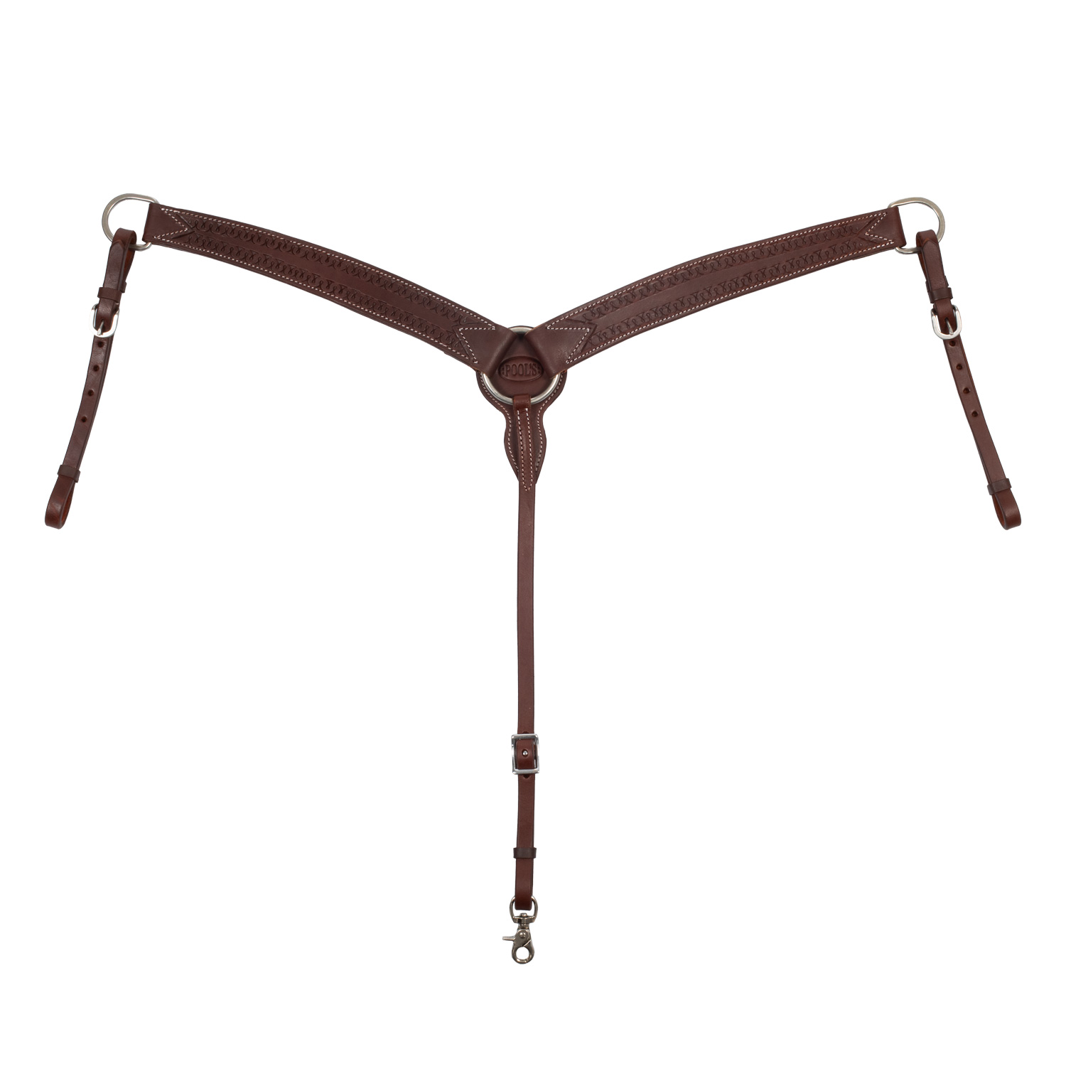 Pettorale western in cuoio di alta qualità e liscio, realizzato con fibbie in acciaio inox per una massima durabilità e resistenza nel tempo. Il pettorale è inoltre dotato di riscontri laterali e aggancio per il sottopancia.