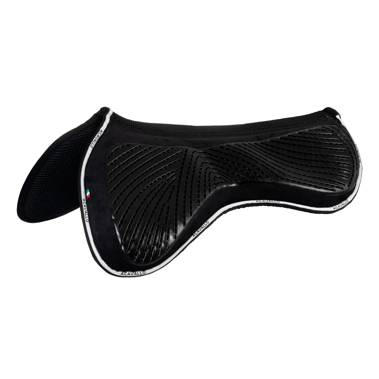 Compensatore flat Acavallo® in memory foam da salto close contact shape con shaped withers e 3D spacer spine in camoscio e grip in gel antiscivolo.