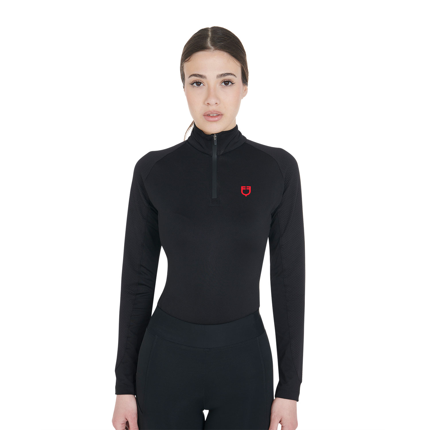 Il capo è impreziosito da una chiusura a zip con sistema antivento e logo Equestro sul lato sinistro del petto.